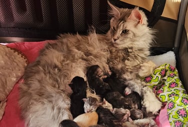 Nous sommes une famille passionnée qui assure la sélection de Maine Coon sociable et en bonne santé à travers le parcours SQR (Sélection de Qualité des Reproducteurs) du LOOF et la proposition d'un environnement de vie serein.