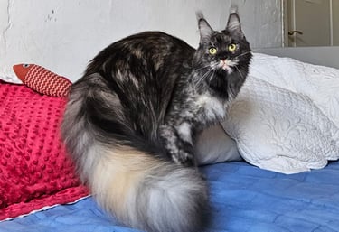Rencontrez nos magnifiques Maine Coons, soigneusement sélectionnés pour leur tempérament équilibré, leur qualité morphologique et leur bonne santé.