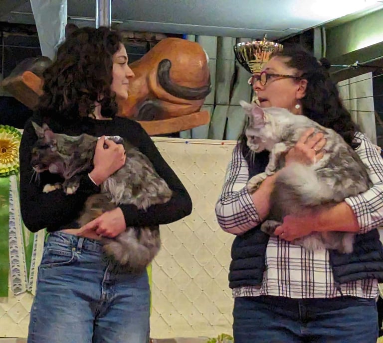 Première rencontre avec un Maine Coon : Galadrielle. Elle deviendra la Doyenne de la Chatterie et sera à l'origine de notre addiction à ces merveilleux compagnons.