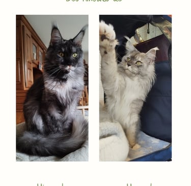 Nous sommes une famille passionnée qui assure la sélection de Maine Coon sociable et en bonne santé à travers le parcours SQR (Sélection de Qualité des Reproducteurs) du LOOF et la proposition d'un environnement de vie serein.